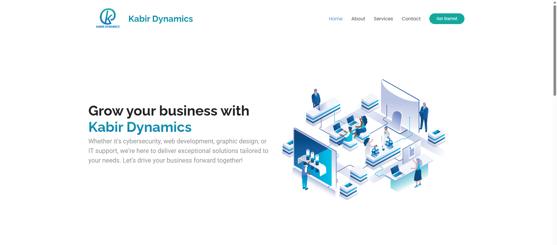 This is the official website for a IT company named Kabir Dynamics. Using HTML, CSS,