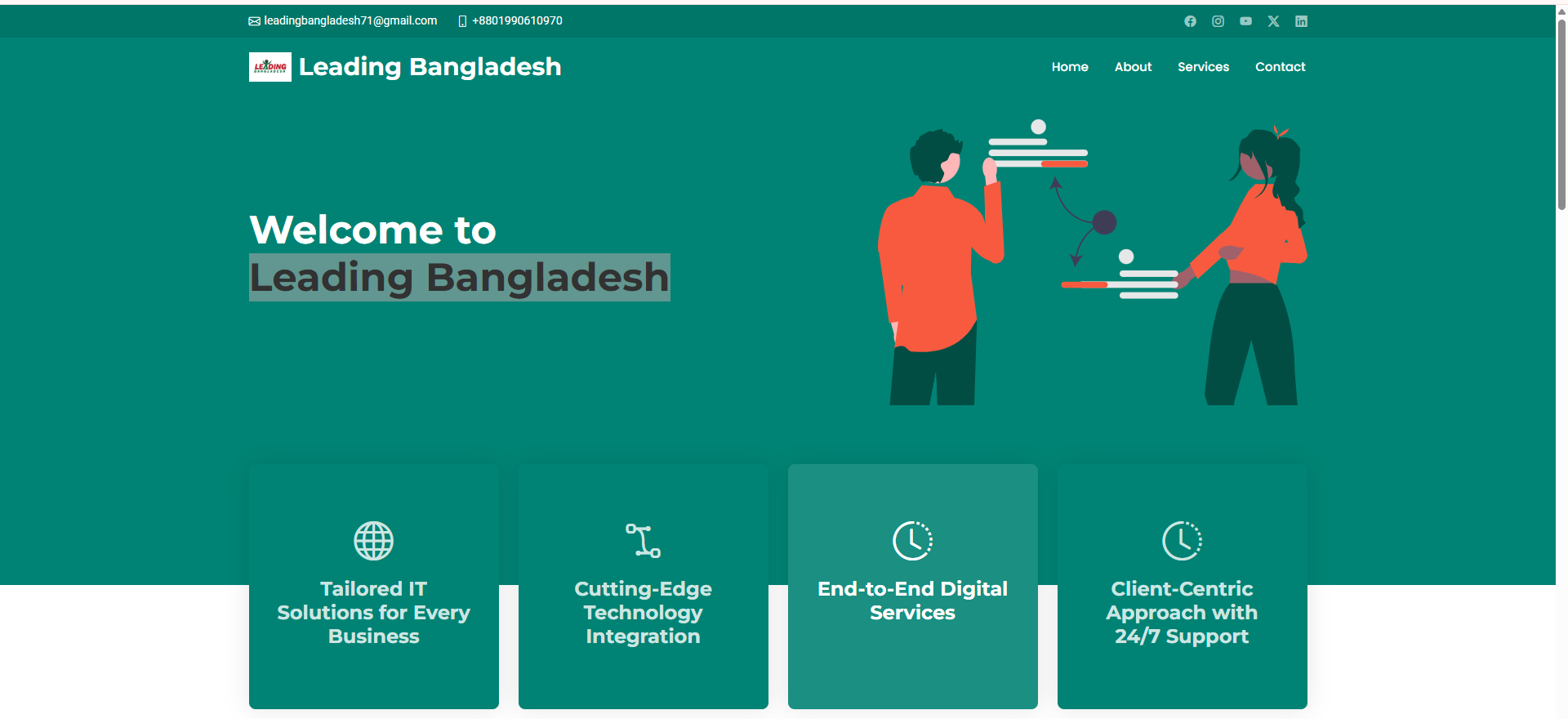 This is the official website for a IT company named Leading Bangladesh. Using HTML, CSS,